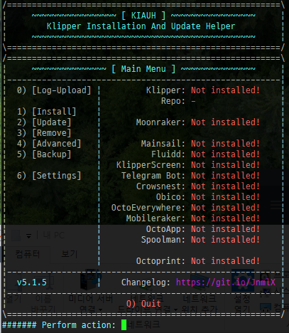 A. KIAUH (https://github.com/dw-0/kiauh) 다운 및 실행